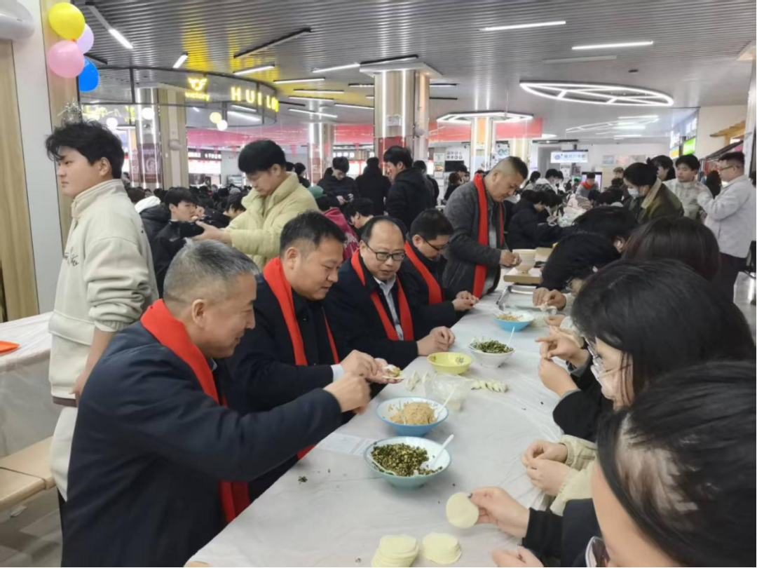 为弘扬中华优秀传统文化,丰富校园文化生活,增强学生的劳动意识与集体归属感,12月21日中午,学院在北苑餐厅组织开展"情暖冬至,韵承文化"冬至包饺子文化育人活动。校党委副书记高超杰,党委委员、副院长黄世谋出席活动。学生处、招生与就业办公室、团委、保卫处、建筑与水利工程学院负责人及300余名2025级学生代表共聚一堂,同唱《我和我的祖国》,用歌声表达对祖国的祝福,用青春姿态向祖国深情告白,在暖冬中共庆佳节。