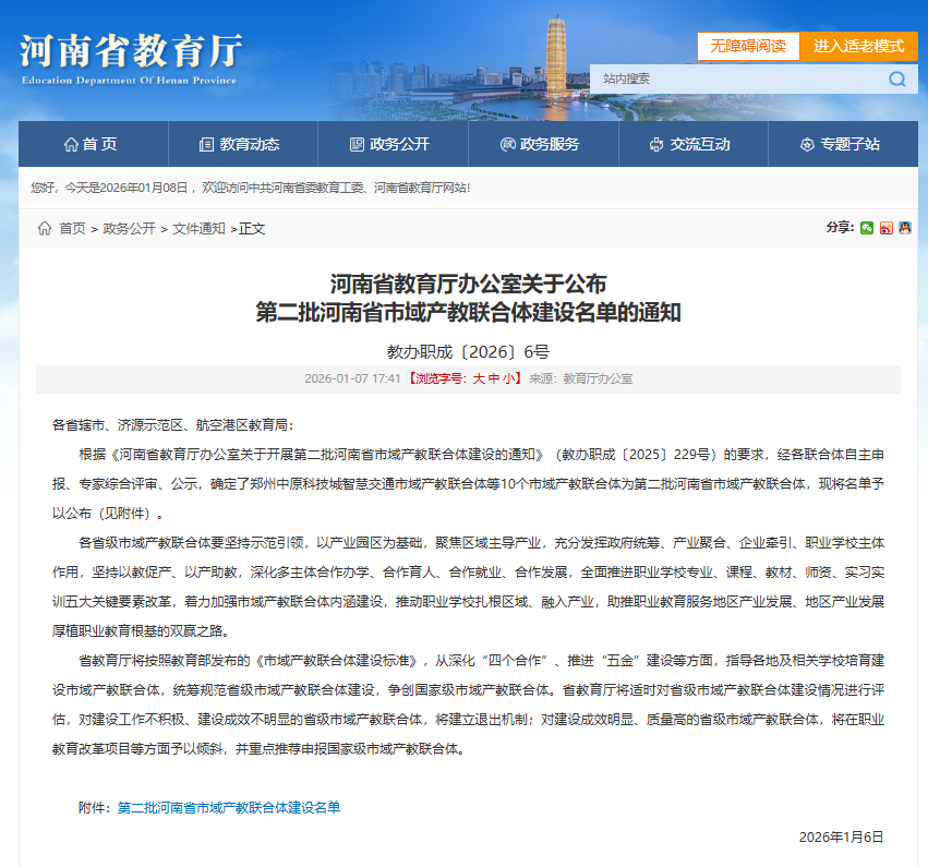 近日,河南省教育厅印发《河南省教育厅办公室关于开展第二批河南省市域产教联合体建设的通知》(教办职成〔2025〕229号),前期经园区申报、地方推荐、专家评审、网上公示等环节,由我院和三门峡高新技术产业开发区、宝武铝业科技有限公司牵头组建的“三门峡高新技术产业开发区有色金属材料精深加工产教联合体”成功获批,这是继我院获得“全省首批产教融合共同体”后的又一重要荣誉,标志学院持续深化现代职业教育体系建设改革取得又一实质性突破。