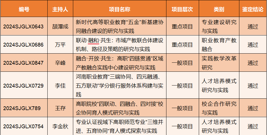 近日,河南省教育厅公布了《关于河南省高等教育教学改革研究与实践项目(高等职业教育)拟结项项目的公示》,学院申报的6个项目全部通过鉴定结项。