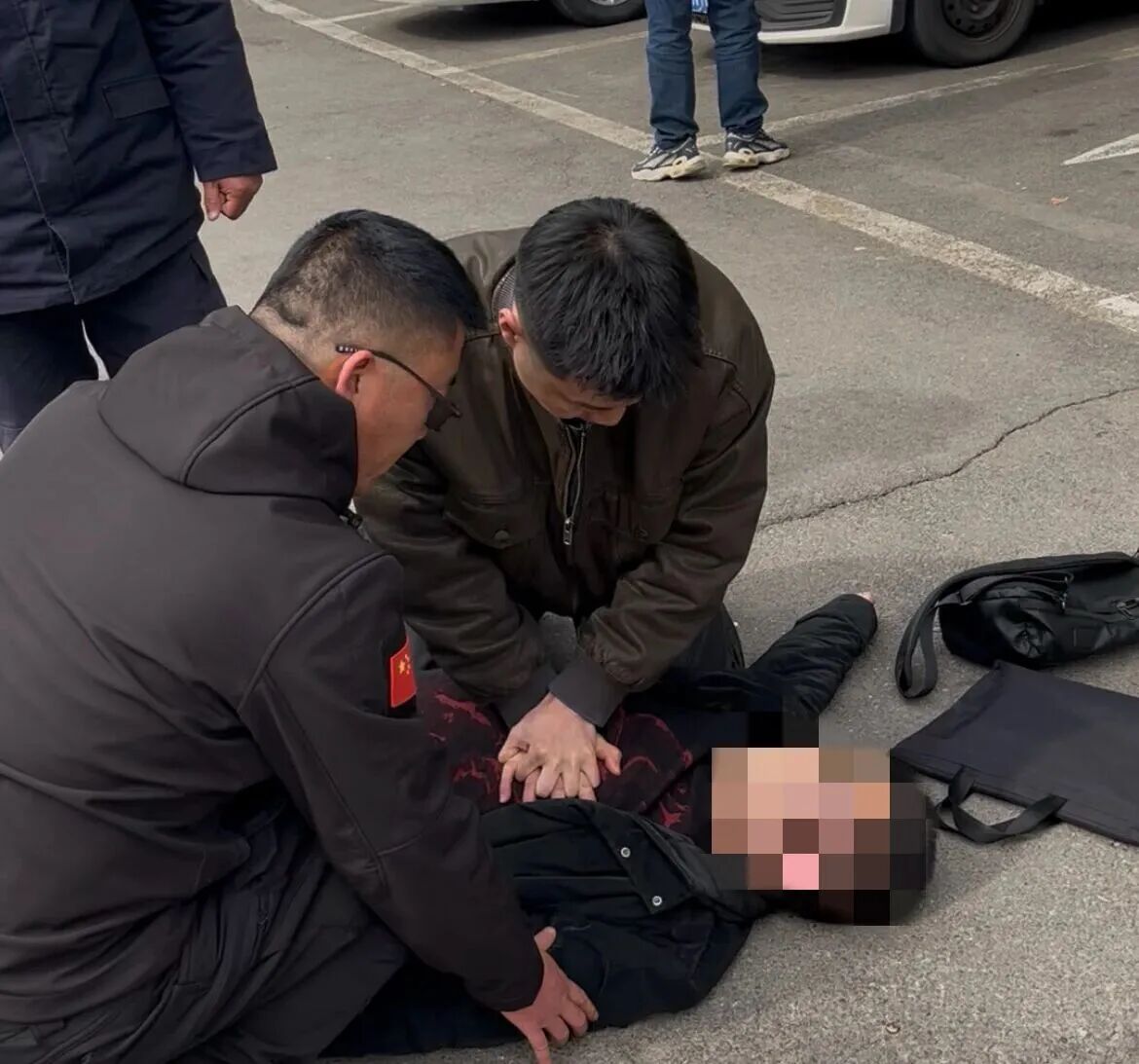 发现险情后,曹锐没有片刻迟疑,不顾身边往来的人流车流,迅速飞奔上前,第一时间拨打“120”急救电话,同时大声向周边呼救。冲到患者身边后,他快速俯身检查情况,发现男子已意识模糊、呼叫无回应,面色也出现异常改变。作为深耕运动训练领域的专业教师,曹锐熟练掌握心肺复苏、海姆立克急救法等专业技能,具备扎实的急救能力。在“120”接线人员的远程专业指导下,他立即跪地展开施救,随后闻讯赶来的学校保卫处同事也加入进来,两人交替配合持续为患者实施心肺复苏,一下、两下、三下…… 规范有力的按压穿透了周边的嘈杂,为患者争取到了最宝贵的黄金救援时间。