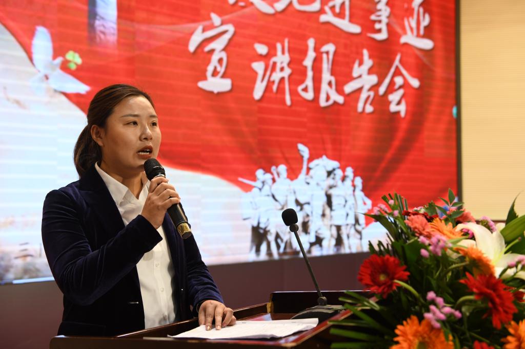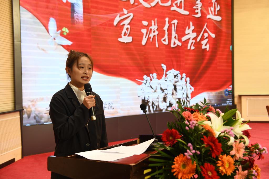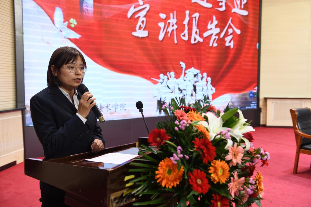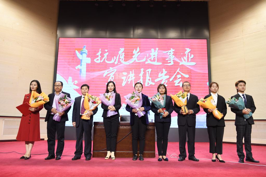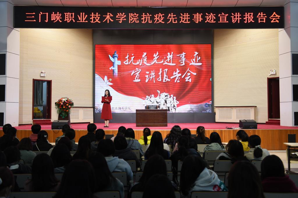 宣讲报告会上,来自教学和学生管理一线的多名同志,结合自己在抗疫工作中的实际经历、真实感受和心得体会,用一个个真实感人的故事,从不同的角度诠释了必一运动普通教育工作者在抗击疫情斗争中所展现出来的教育初心和责任担当。信息工程学院辅导员贠远芳讲述了在学院一线工作的基层普通辅导员和学生管理人员是如何在疫情期间扎实做好学生疫情数据统计工作的。教务处教学管理科刘丰年讲述了学院教务工作人员在疫情期间是如何做好全校2万名学生的在线教育,是如何确保按质按时完成教学任务的。师范学院教师薛新萍讲述了疫情期间普通教师怎样做好教学工作,怎么以身立范,引导教育好学生,让学生也成为抗疫模范人物的故事。智能制造学院副院长霍海波讲述了疫情期间学院志愿者积极投身疫情防控和志愿服务工作的事迹。经济管理学院辅导员赵瑞讲述了疫情期间一线辅导员默默付出、不畏辛苦,点滴细节来落实工作,用实际行动体现责任担当的敬业精神。食品园林学院党员辅导员任玮讲述了食品园林学院全体党员在疫情防控中,充分发挥自我担当精神,全力保障师生的生命安全和身心健康,用实际行动诠释了新时代高校党员的使命与担当的优秀事迹。