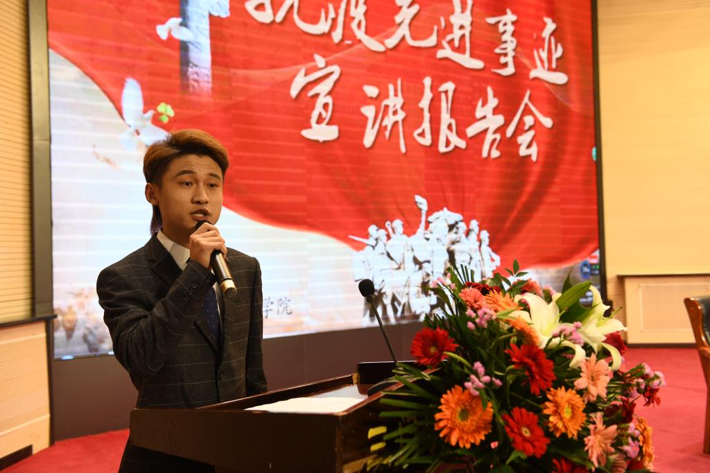 谁才是这个时代该追的星,这次疫情大考给出了我们明确的答案!信息传媒学院2019级软件技术专业学生李岩作了题为《谁才是这个时代该追的星》的宣讲,引起了众多青年学生的共鸣。同学们都认为“追星”不是人云亦云地追捧所谓的流量明星,也不是单纯图一时的热闹,抗击疫情的英雄是夜空中最亮的星,他们指引着青年前行,成为青年人人生奋斗的标杆,青年人要追就该追逐这样的星。师范学院2019级学前教育专业学生陈甜乐作了题为《不一样的青春,不一样的我》的宣讲,讲述了疫情期间学院众多青年学子积极响应国家和学校号召,踊跃投身抗疫阻击战,成为抗疫先进人物的故事。
