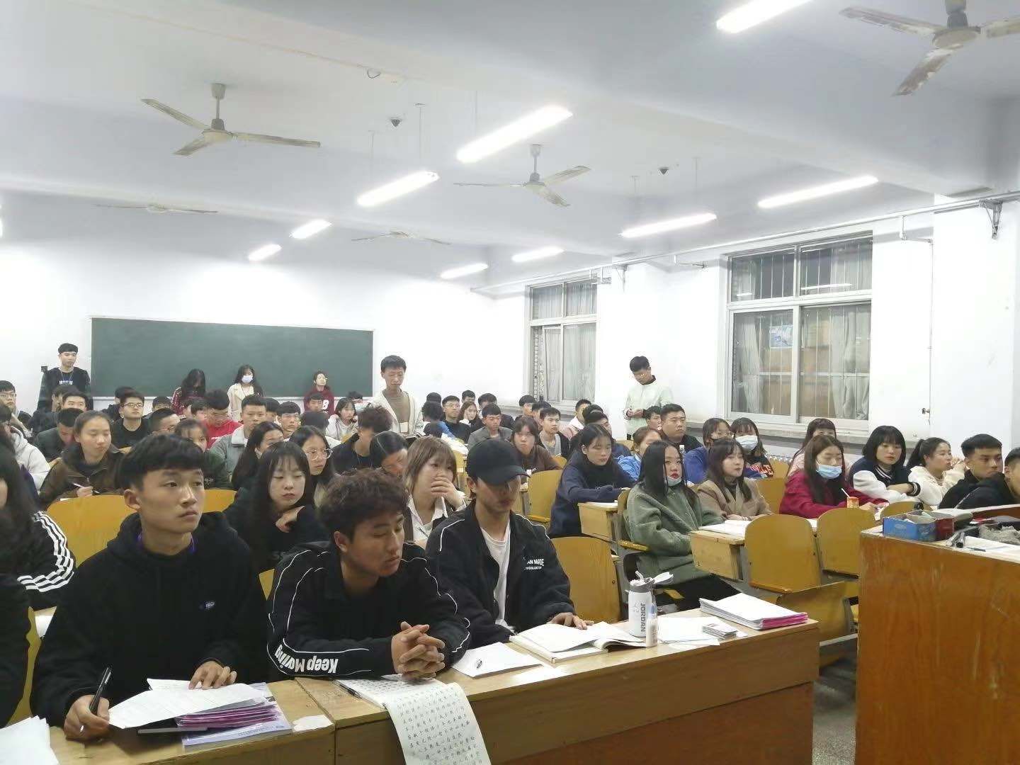 各个班的班会以多种形式同时展开。首先,各班心理委员就班会的主题展开了详细的讲解。其次,各班以不同的形式开展活动,有的班级同学进行了一场以我与祖国共成长,我与学校共发展为主题的演讲比赛;有的班级同学开展了一场知识竞赛,并且通过观看一段爱国沙画表演,并针对视频内容提出问题供同学们竞答。在整个过程中,同学们积极举手发言,你争我抢,瞬间点燃了班会的氛围。同时,各班同学们就祖国未来的发展和学校的发展展开自由讨论,同学们积极主动上台发表了自己的观点。最后,各班班会通过爱国教育短片或总结发言来结束,使在场的同学收获颇多,从而加强了学生的思想政治教育和爱国爱校精神。