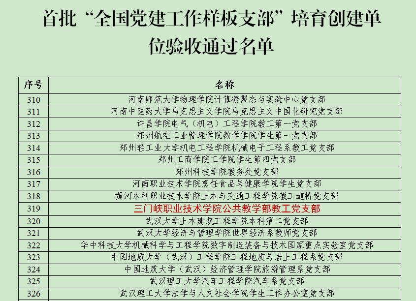 近日,教育部公示首批全国党建工作示范高校、标杆院系、样板支部培育创建单位验收结果,学院公共教学部教工党支部通过首批“全国党建工作样板支部”培育创建单位验收。