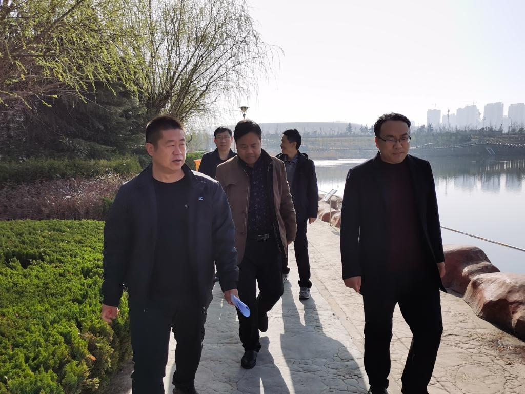 在王波的陪同下,张永胜一行4人参观了学院的校园文化长廊、古城墙、砚池、机电和建筑工程训练中心,对我院完善的教学设施和优美的校园表示赞赏。