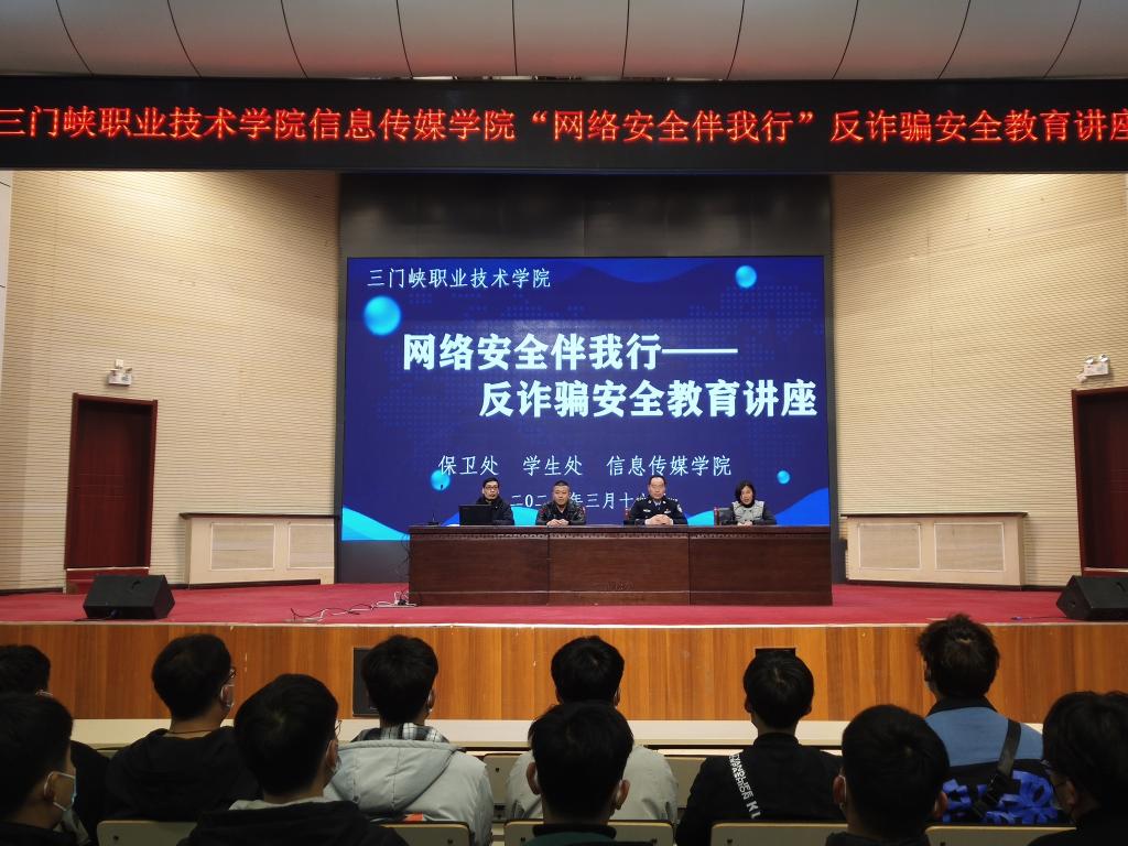 3月18日晚,保卫处、学生处邀请三门峡市公安局经济开发区分局反诈骗专家山青勋警官开展“网络安全伴我行”反诈骗安全教育讲座。信息传媒学院师生参加了此次讲座。