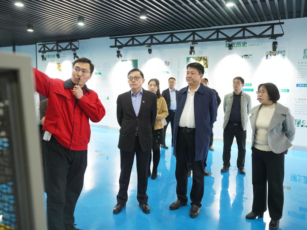 会前,在杨彤的陪同下,刘东海一行到工程训练中心等进行了实地考察。