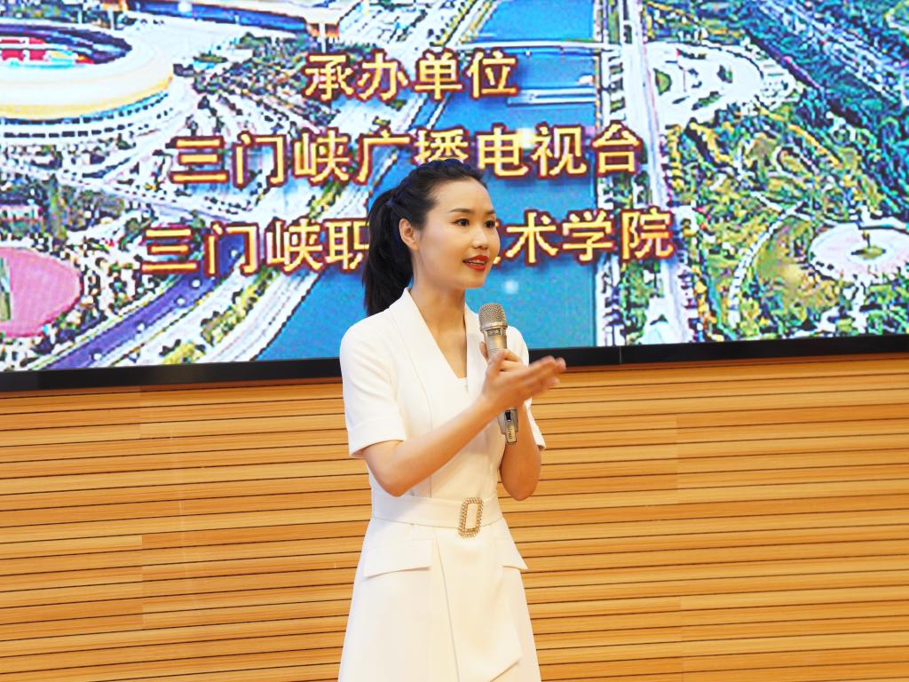 必一运动党委副书记宋六锁,河南省委宣传部宣教处、三门峡市委宣传部、三门峡广播电视台等单位相关领导,各县(市、区)委宣传部、市委组织部、市委市直工委、市教育局、社会管理职业学院、市扶贫办、市政府国资委、市农业农村局、市卫健委等市直相关单位分管领导以及我院70余名学生参加活动。