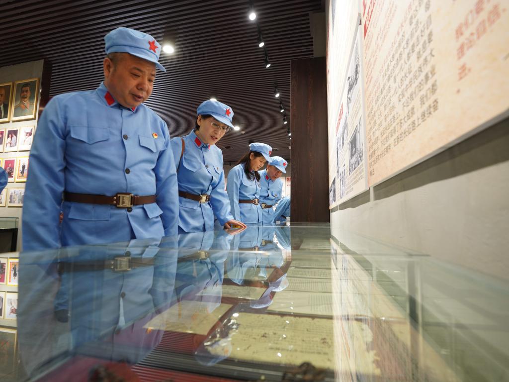 大家穿上红军装,跟随讲解人员,认真参观了红色教育基地的两个展馆,为一个非公有制企业重视红色文化建设,大力投资建设革命展馆,并珍藏着毛泽东等老一辈革命家红色图片、画像、徽章、书籍、报纸等丰富红色物品所感动,也从中深切感悟到革命老前辈的思想伟力和中国共产党百年的奋斗历程,也更加懂得中国红色政权来之不易,新中国来之不易,中国特色社会主义来之不易,从而学习红色文化,增强爱国情怀,传承革命精神,坚定“四个自信”。参加学习人员还在党旗下重温入党誓词,最后吃了忆苦思甜饭,也过了一个有意义的主题党日活动。