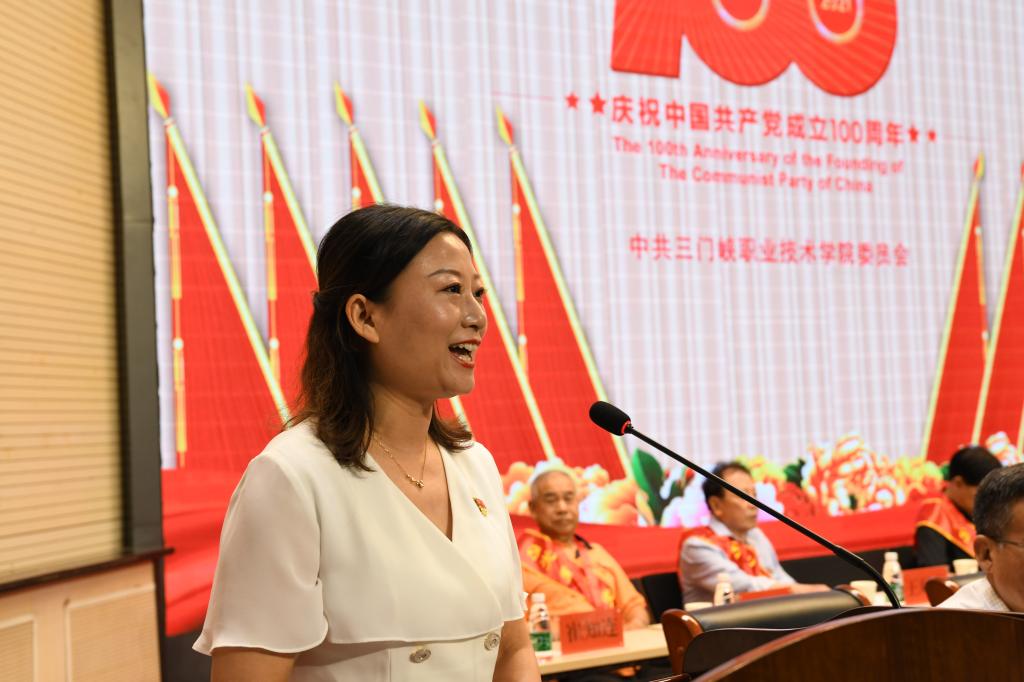优秀共产党党员代表雷霞,优秀党务工作者代表郑国富,先进基层党组织代表李少杰先后发言,分享了在教育教学、党务工作、基层党组织建设等方面的成绩和感悟。