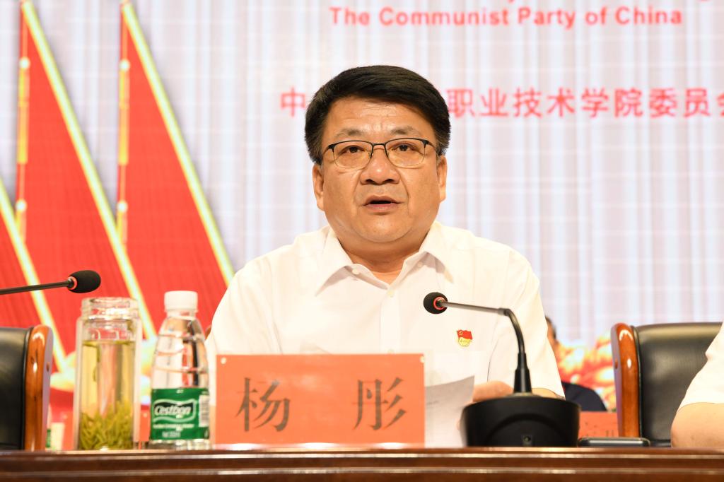 杨彤指出,今年是中国共产党成立100华诞,新中国成立72周年,也是我们学院开展职业教育22周年。伴随着40年改革开放的历史洪流,22年的栉风沐雨、艰苦创业,学院从无到有、由小变大、由弱变强,实现了跨越式发展,全院现有14个二级学院和教学院部,开设66个专业,专兼职教师900余人,各类在校生3万余人,逐步发展进入省高职院校的先进行列。