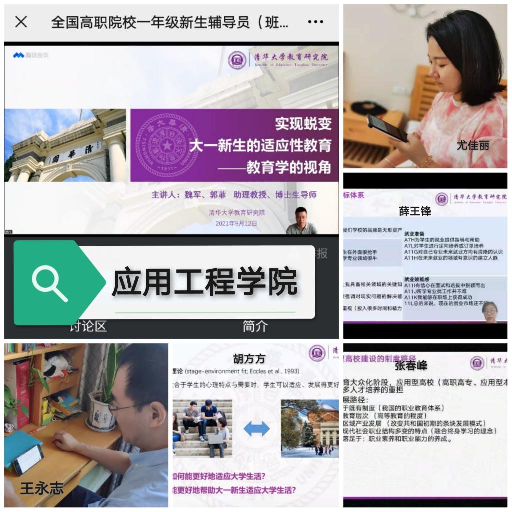 本次专题培训,专门选取了“全国高职院校一年级新生辅导员(班主任)岗前实操系列课程”的内容,主题是《实现蜕变——大一新生的适应性教育——教育学的视角》,由清华大学博士生导师郭菲、博士生导师魏军二位老师联袂主讲。讲座从教育学的视角出发,用大数据和系列案例分析了大一新生的特点和进入学校后存在的不适应及调整等问题,对辅导员做好新生教育服务工作有较好的指导意义。