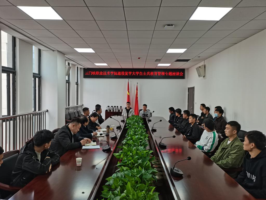 座谈会上,学生处相关负责人向退役复学学生代表介绍了学院近年来大学生征兵工作的基本情况和所取得的成绩,并组织学习了新修订的《兵役法》,针对退役复学学生代表集中提出的学费补偿代偿、学业课程等问题做了详细的解答。