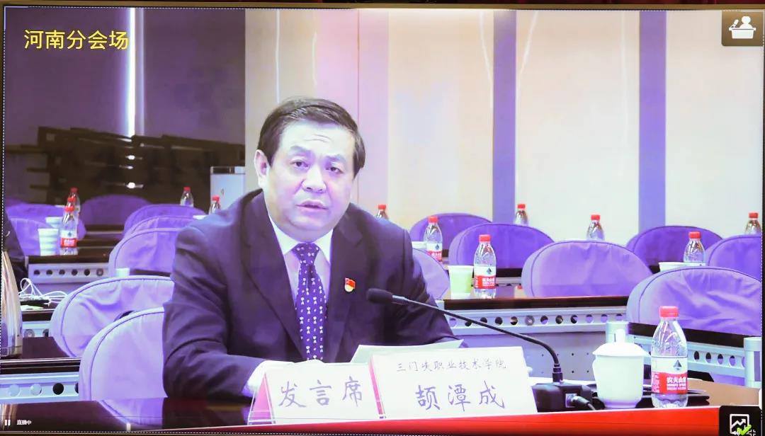 院长颉潭成在河南分会场参加会议,并作为全国唯一一所职业院校代表在会上作典型发言。