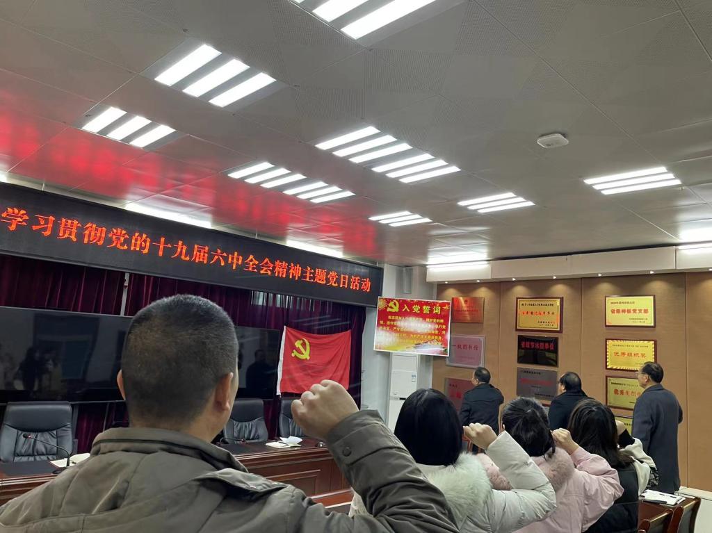 支部书记黄世谋就学习贯彻党的十九届六中全会精神提出三点要求。一要学习文献,认真学习马克思主义的纲领性文献,马克思主义中国化的光辉成果。要认真领会《中共中央关于党的百年奋斗重大成就和历史经验的决议》内涵,认真贯彻执行。二要以史为鉴,党的十九届六中全会审议通过的《中共中央关于党的百年奋斗重大成就和历史经验的决议》,通过总结历史经验达到凝聚共识继续奋斗。在中国共产党成立一百周年之际,当今世界正经历百年未有之大变局,我国正处于实现中华民族伟大复兴关键时期。在这一重大历史时刻,全面总结中国共产党的百年奋斗重大成就和历史经验,对推动全党进一步统一思想、统一意志、统一行动,坚定信心、开创未来,对认识历史规律、增强历史自觉、掌握历史主动,对推动全党不忘初心使命、团结带领全国各族人民夺取新时代中国特色社会主义伟大胜利,具有十分重大的意义。三要开创未来,面对新时代,要牢记党的十九届六中全会对全体中国共产党人的要求,不忘初心使命,坚定不移坚持和发展中国特色社会主义,朝着实现中华民族伟大复兴的目标奋勇前行!