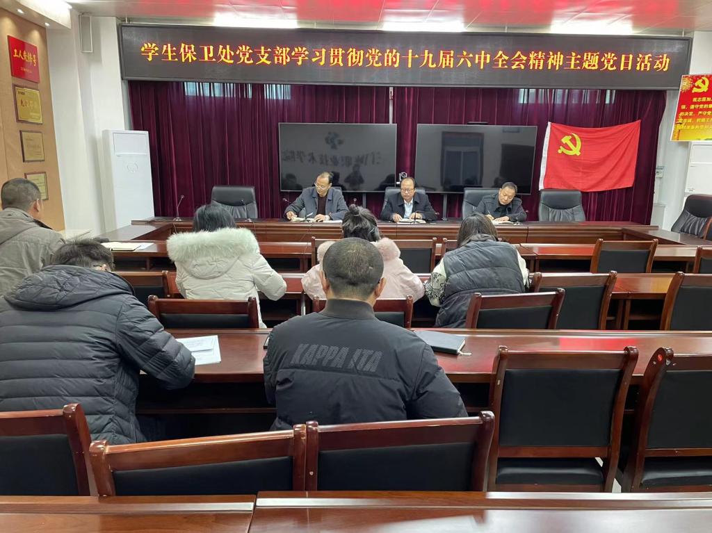 11月25日,学生保卫处党支部在六号楼荣誉室开展学习贯彻党的十九届六中全会精神主题党日活动,会议就全会精神的学习进行交流。