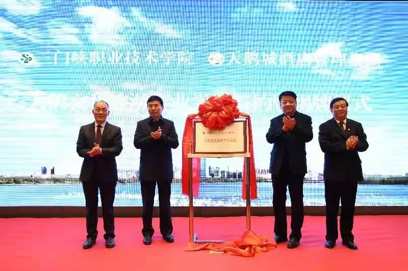三门峡天鹅城酒店管理集团公司领导班子成员、机关全体人员、各子公司负责人、中层以上管理人员,以及学院领导班子成员、相关职能部门负责人、经济管理学院全体教师和天鹅文化旅游产业学院学生代表等参加签约暨揭牌仪式。