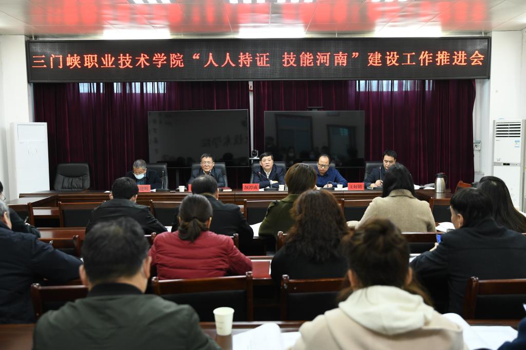 3月23日上午,学院“人人持证、技能河南”建设工作推进会在天鹅湖校区荣誉室召开。党委副书记、院长、学院职业技能等级认定中心主任颉潭成出席会议并讲话。