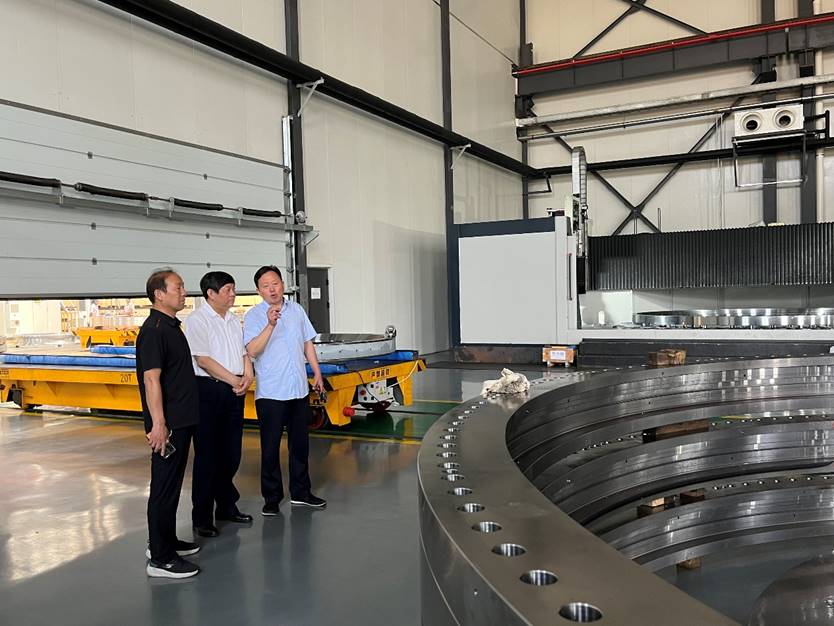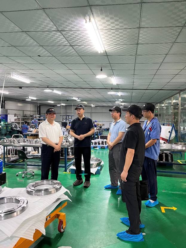 颉潭成一行参观企业生产车间、产品陈列展,详细了解企业发展历程、生产状况。洛阳新强联回转支承股份有限公司是一家国家级重点高新技术企业,以大型回转支承产品和风力发电机偏航变桨轴承及主轴承产品研发、制造、销售为主,是服务于风力发电、海工装备、港口机械、船用机械、盾构机设备等行业的创新型龙头企业。洛阳鸿元轴承科技有限公司致力于研发、制造中国的高端轴承,是河南省瞪羚企业、河南省专精特新企业、洛阳市隐形冠军企业,专业研发、制造精密转台轴承、薄壁交叉滚子轴承、机器人减速器专用轴承三大系列产品,主要应用于高精度数控转台、机床主轴、工业机器人、航空航天等领域。