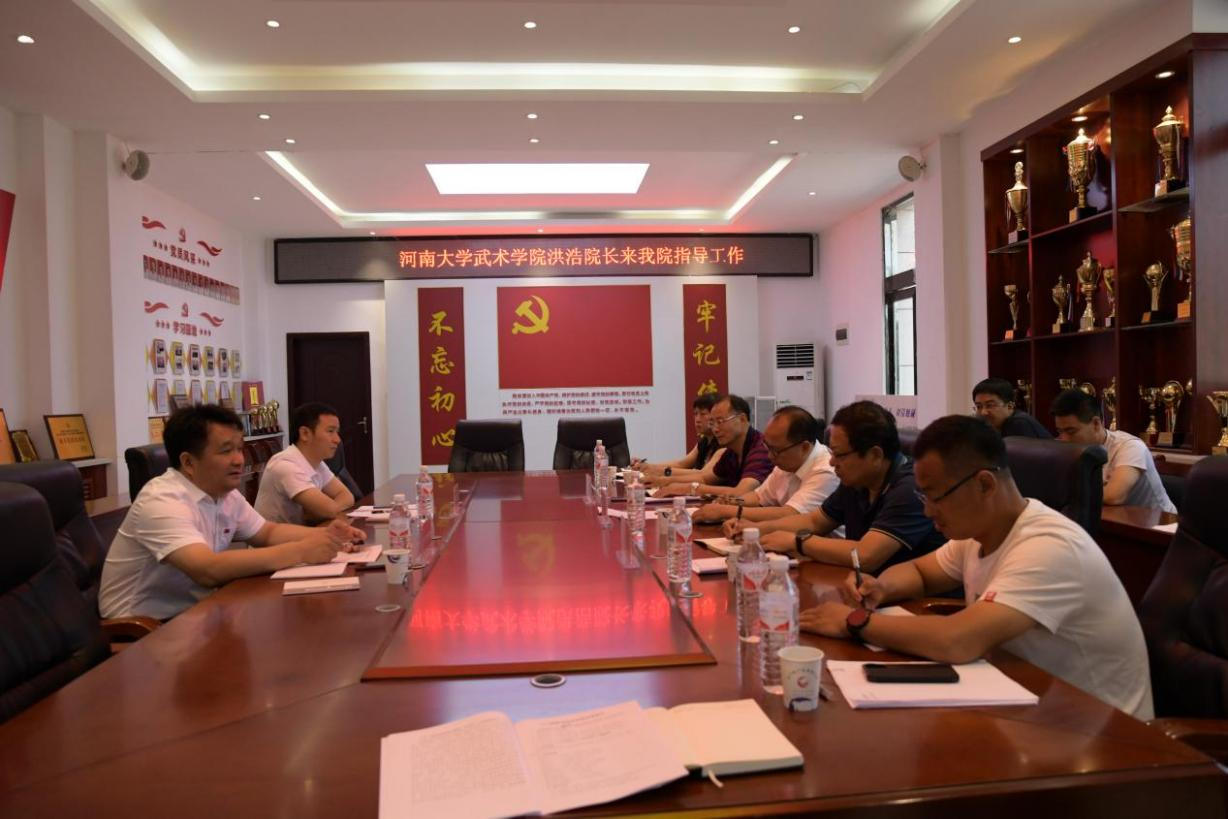 为加快体育学院发展,提升体育学院专业建设质量,有效促进体育学院国际化发展。6月23日上午,河南大学武术学院院长洪浩教授、山东嘉合世达国际教育交流有限公司国际部主任杨国朝一行到我校体育学院调研指导工作,学院党委委员、副校长黄世谋,体育学院党总支书记孙富平及部分体育教师参加了会议。会议由体育学院行政负责人曲扬主持。