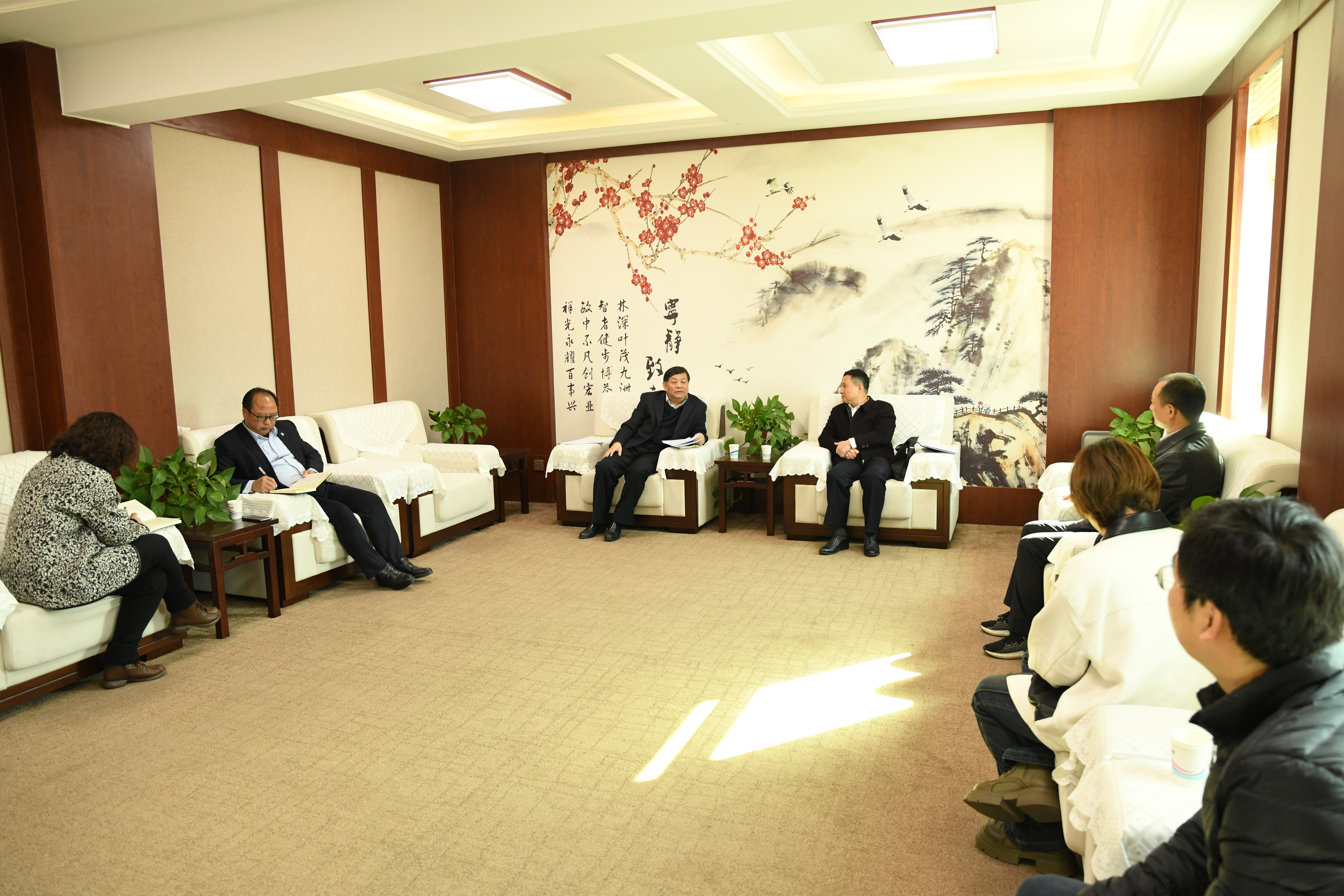 11月16日,三门峡市科学技术协会党组书记、主席彭增康携市科协党组成员、副主席高军政等一行4人到我院调研。校长颉潭成,党委委员、副校长、市科协副主席黄世谋,科研处处长陈玮等陪同调研。双方在天鹅湖校区行政楼第二会议室进行了座谈交流。