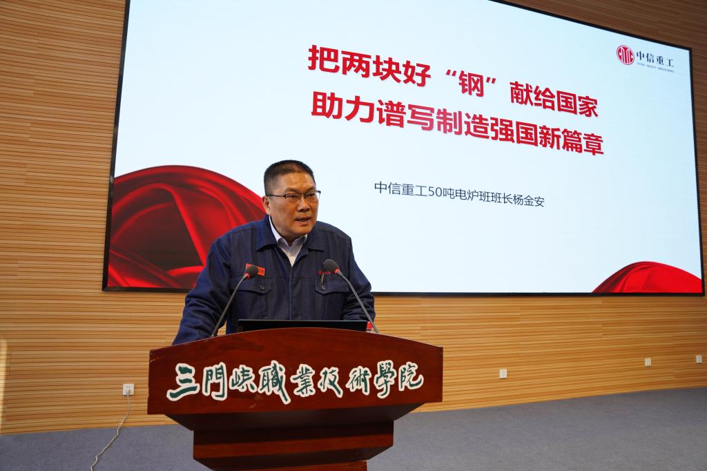 崤函工匠、河南黄金产业技术研究院高级工程师李建政作为特聘导师代表进行了发言,食品园林学院双师型青年教师代表张棋表达了对大国工匠杨金安的崇高敬意。