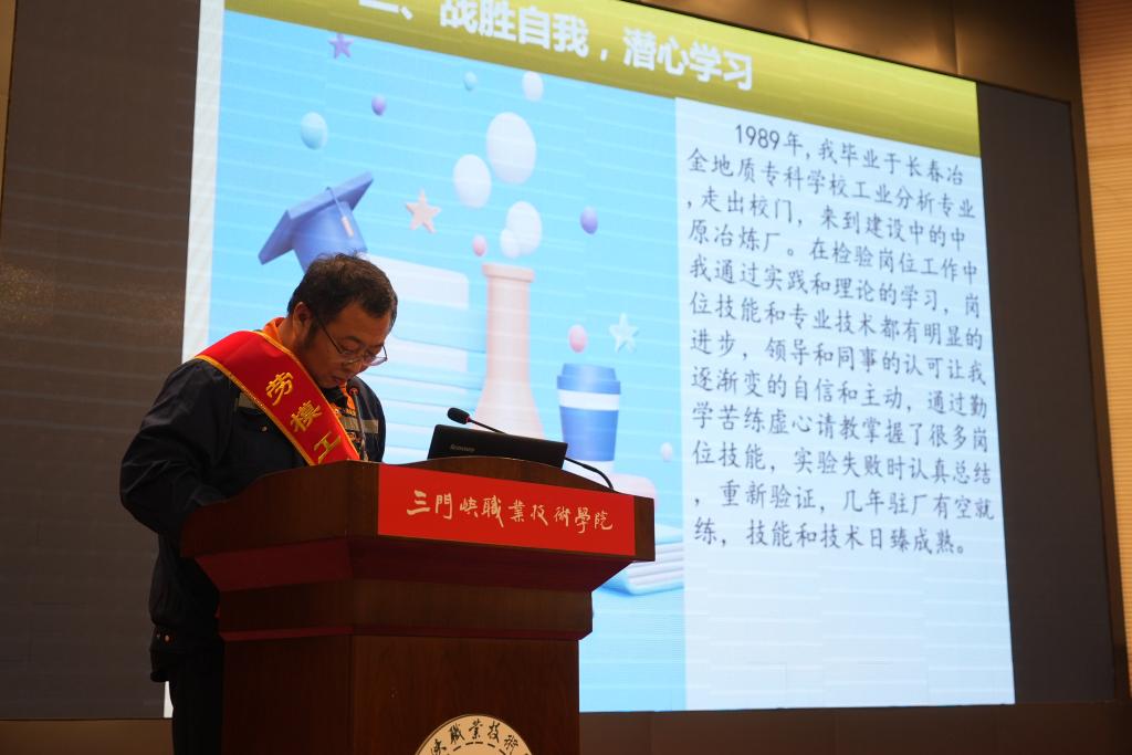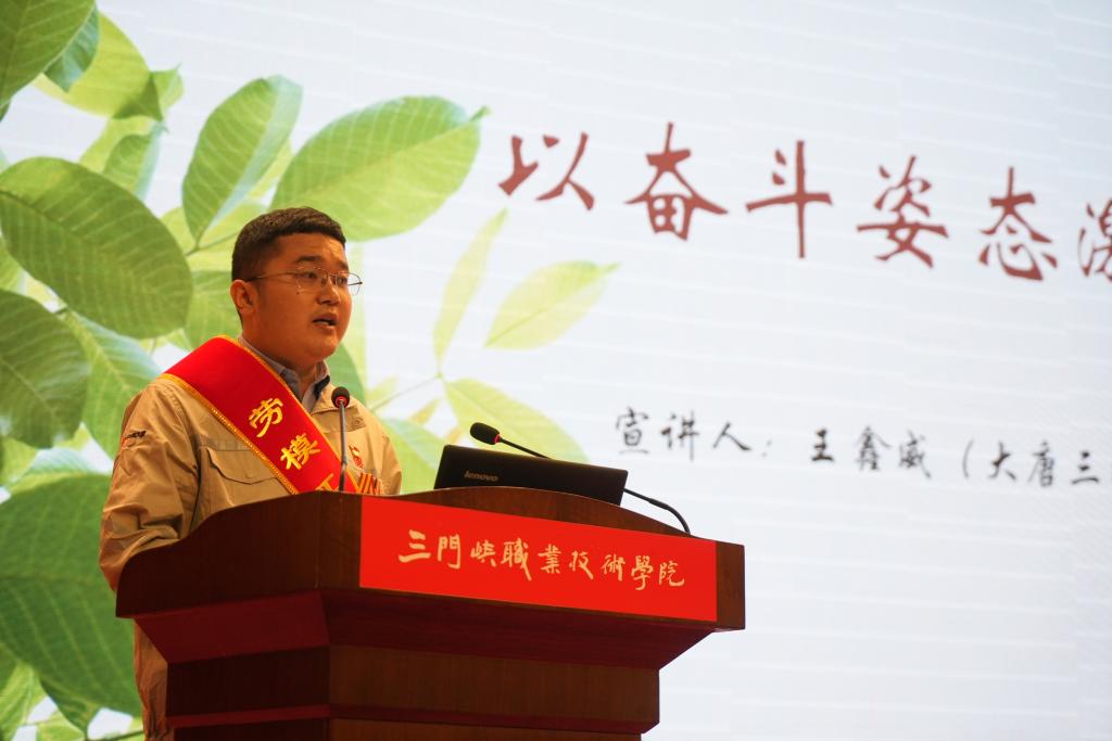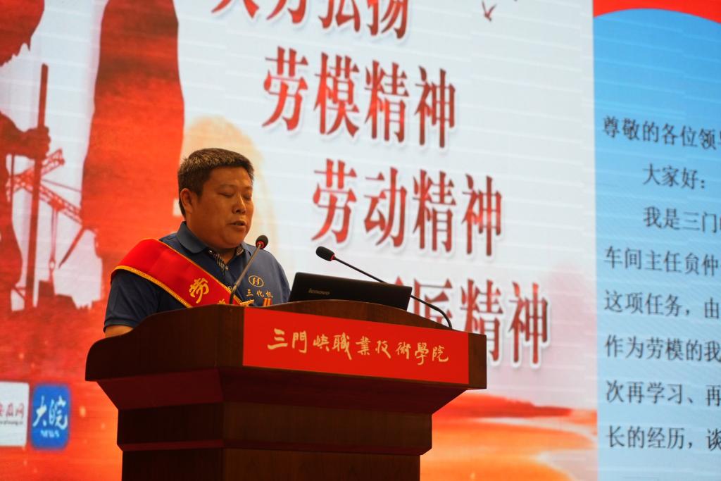 活动邀请了河南省劳动模范、三门峡市劳动模范、三门峡市优秀高技能人才、三门峡市技术能手、三门峡化工机械有限公司劳模贠仲伟同志,全国技术能手、中原大工匠、中原技能大奖、河南省优秀专家、曾获国务院特殊津贴、首届国资委百名杰出工匠、来自河南中原黄金冶炼厂劳模刘成祥同志,三门峡市劳动模范、三门峡市优秀教师、来自必一运动劳模曲扬同志,河南省五一劳动奖章、三门峡市五一劳动奖章、中国大唐优秀技能选手获得者、来自大唐三门峡发电有限责任公司劳模王鑫威同志为我们作宣讲。