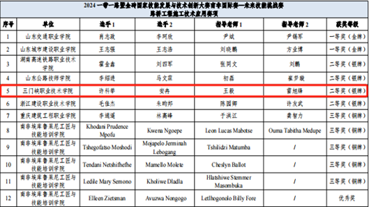 学院在2024一带一路暨金砖国家技能发展与技术创新大赛(南非国际赛)路桥工程施工技术应用赛项中荣获银牌。
