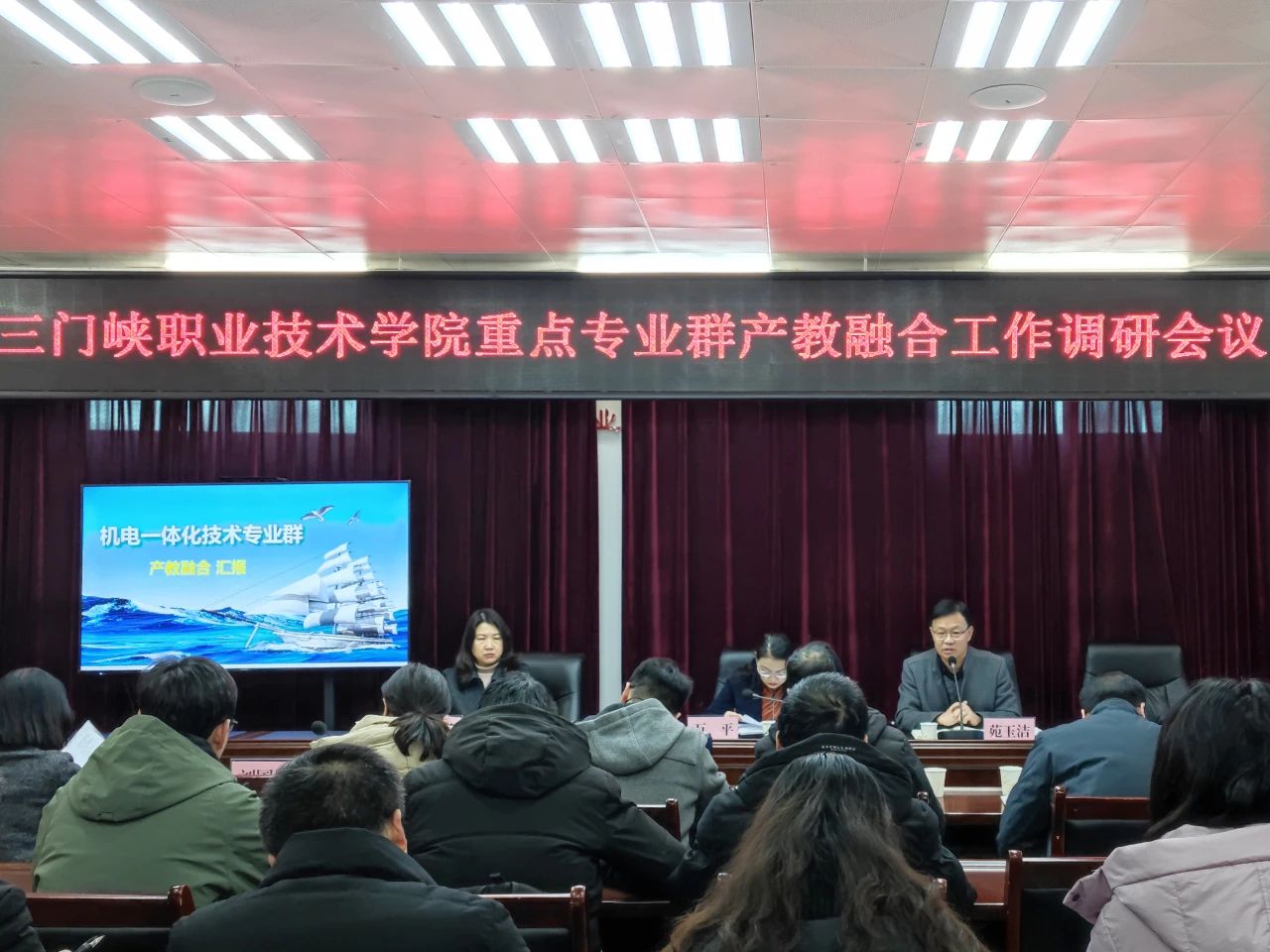万平指出,产教融合是职业教育的基本办学模式,是办好职业教育的关键之所在,更是推进学院高质量发展的生命线。要紧盯三门峡市“8+6”重点产业集群和12条重点产业链开展产教融合工作,抓住服务黄河金三角、三门峡区域经济高质量发展的契机,紧密对接龙头企业、专精特新企业,深度挖掘潜力,补齐短板,以更大的力度、更务实的举措抓好市域产教联合体和行业产教融合共同体建设,确保学院发展能够紧密贴合地方经济社会发展的实际需求,从而为地方经济社会发展作出积极贡献。最后,就如何做好产教融合工作提出三点要求:一要攻坚克难,增强产教深度融合发展的内生动力;二要强化统筹,培育产教深度融合发展的校内生态;三要积极探索,做好学院产教深度融合发展的引领者和示范者。