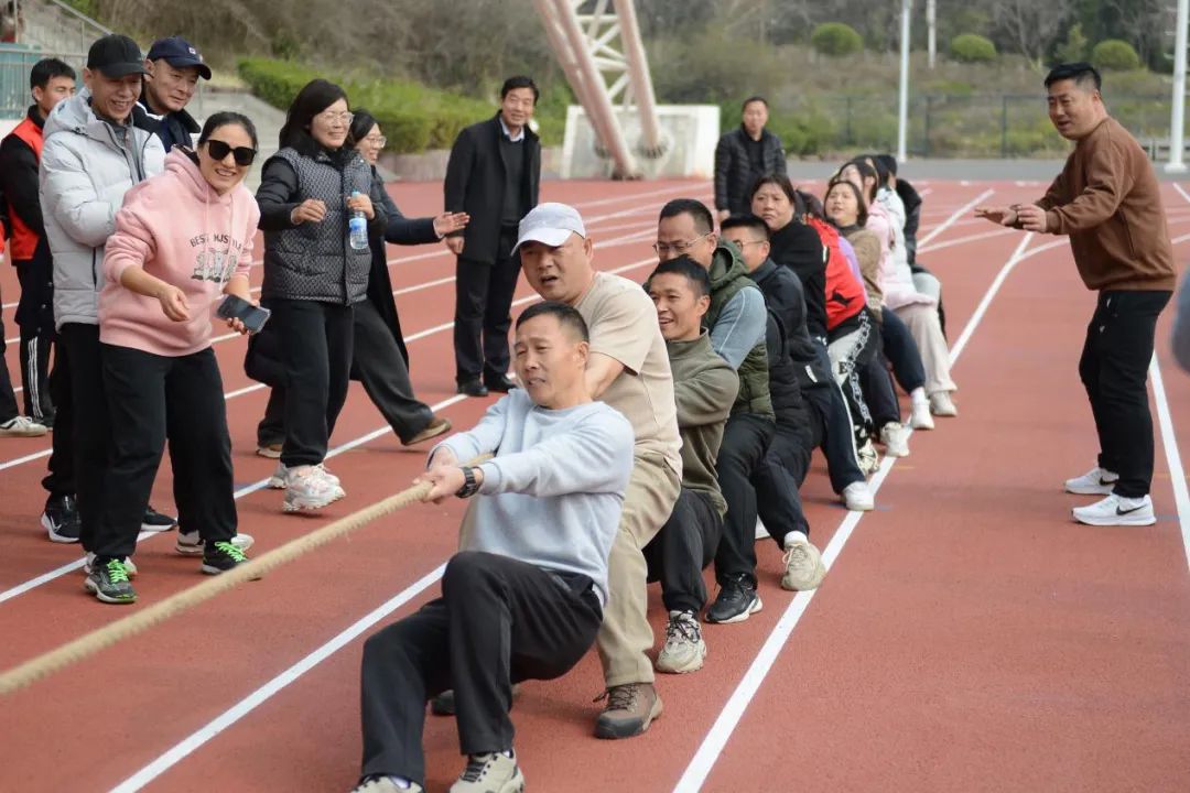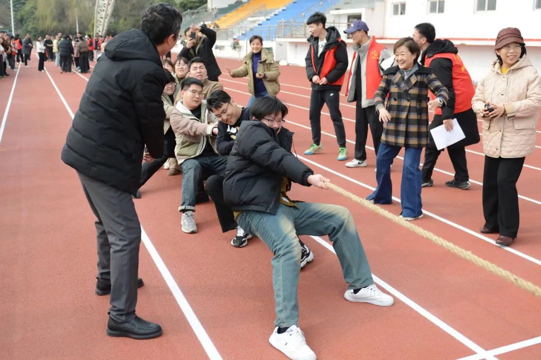 学院党委委员、工会主席杜爱民为拔河比赛致辞,宣布拔河比赛开始。15支分工会代表队以绳为媒,展开力量与协作的较量。参赛队员们紧握长绳、重心后倾,用汗水诠释拼搏精神;场边啦啦队挥舞旗帜、呐喊助威,将团队凝聚力推向高潮。最终,体育学院、师范学院和基础部分工会分获前三名,展现出女教职工飒爽英姿与昂扬风貌。