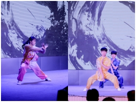 舞台灯光璀璨,传统音乐悠扬响起,同学们身着华美的传统服饰,通过舞蹈、相声、武术等多种艺术形式,将传统文化的独特魅力展现得淋漓尽致,生动体现了中华传统文化的博大精深与独特魅力,赢得台下阵阵掌声与喝彩。这些节目不仅展示了同学们对传统文化的热爱与传承,更激发了大家对中华优秀传统文化的自豪感与认同感。