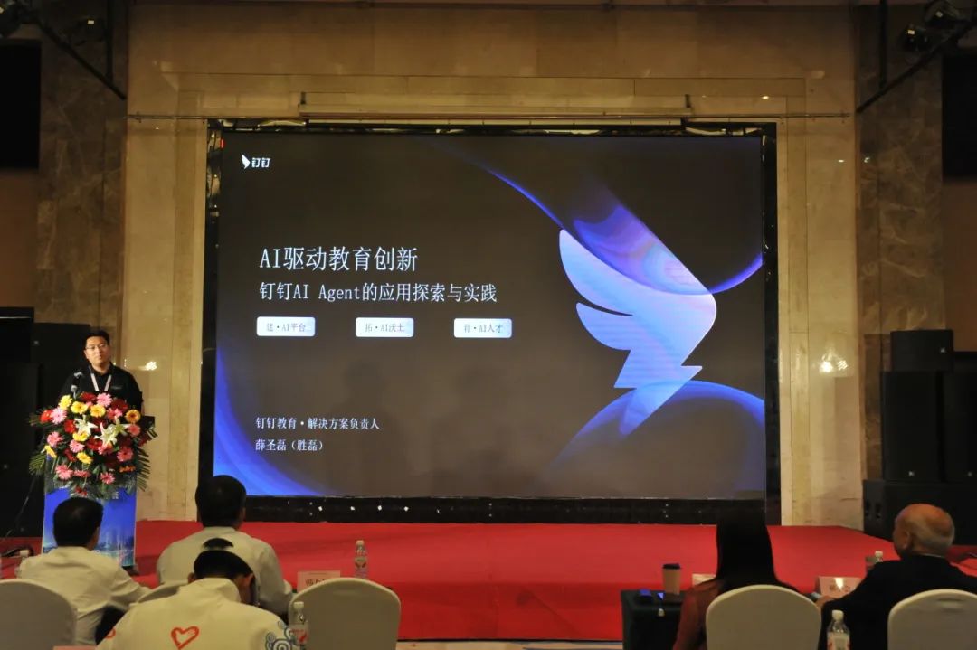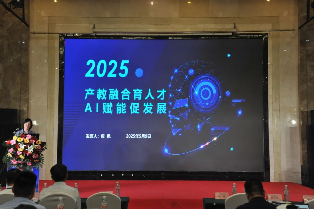 信息传媒学院院长侯枫以《产教融合育人才,AI 赋能促发展》为题作专题报告,围绕 "立德铸魂、产教协同、数字赋能" 三大维度,分享了学院在人才培养改革中的实践经验。