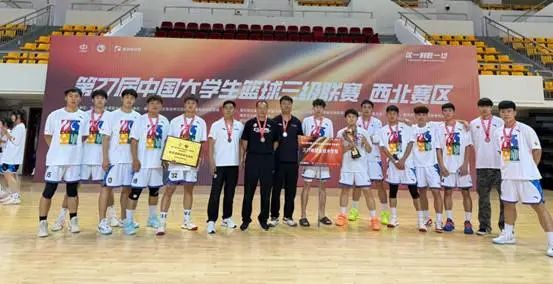 近日,在刚刚结束的2025年CUBAL中国大学生篮球三级联赛(西北赛区)中,学院男子篮球队在六天的激烈角逐中,团结协作、奋力拼搏,以顽强的斗志和精湛的球技,斩获西北赛区季军,挺进全国总决赛。学院荣获“体育道德风尚奖”,学生吴辰震获得“优秀运动员”称号。