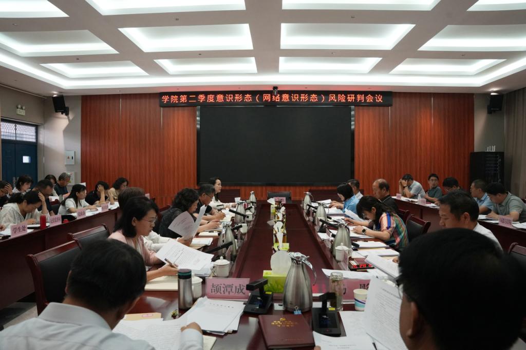 6月13日,学院召开2025年第二季度意识形态(网络意识形态)风险研判会议。党委书记杨彤主持会议并讲话。学院领导班子成员、各院部党政负责人、各部门负责人参加会议。
