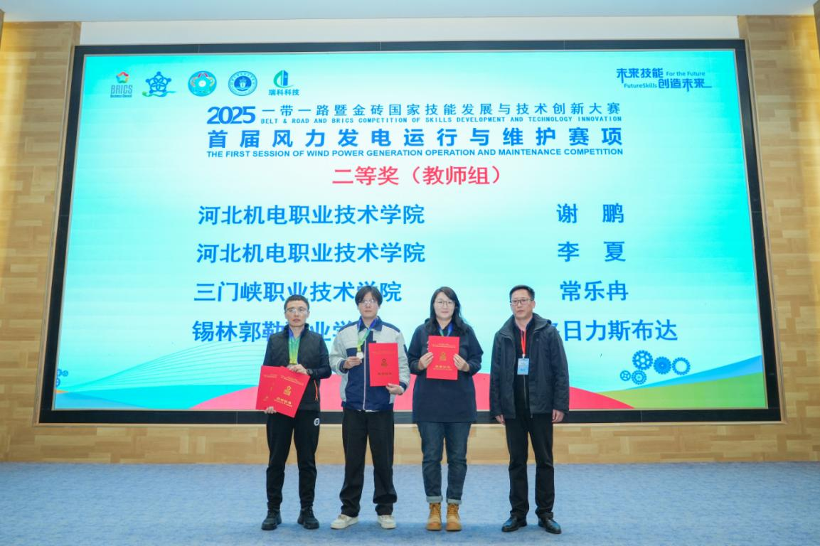 2025年10月23日至26日,2025一带一路暨金砖国家技能发展与技术创新大赛之首届风力发电运行与维护赛项决赛在唐山海运职业学院成功举办。学院师生代表队凭借扎实的专业功底和出色的现场表现,从来自全国的40余支参赛队伍中脱颖而出,共斩获1金、4银、1铜的优异成绩。彰显了学院在新能源领域人才培养的显著成效,更展现了“以赛促教、以赛促学”育人理念的丰硕成果。