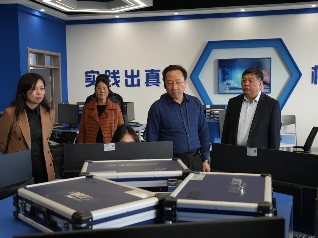汇报会后,专家组集中查阅佐证资料,并实地考察了图书馆、大数据中心、数据中心机房、智能安防监控中心、虚拟仿真实训基地、智慧教室等场所,深入了解学院信息化设备和平台的实际运行状态、技术创新特点及应用成果。其间,专家组与院领导围绕学校信息化发展战略定位、资金投入保障及未来发展规划等关键问题展开充分交流。