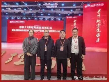 2025年11月22日,全国粮油食品行业检验检测产教融合共同体成立大会在河南工业贸易职业学院隆重举行。学院受邀出席大会,凭借在食品检验检测领域的深厚专业积淀与扎实产教融合实践成果,成功当选为共同体副理事长单位。食品园林学院院长带领骨干教师代表参加会议。