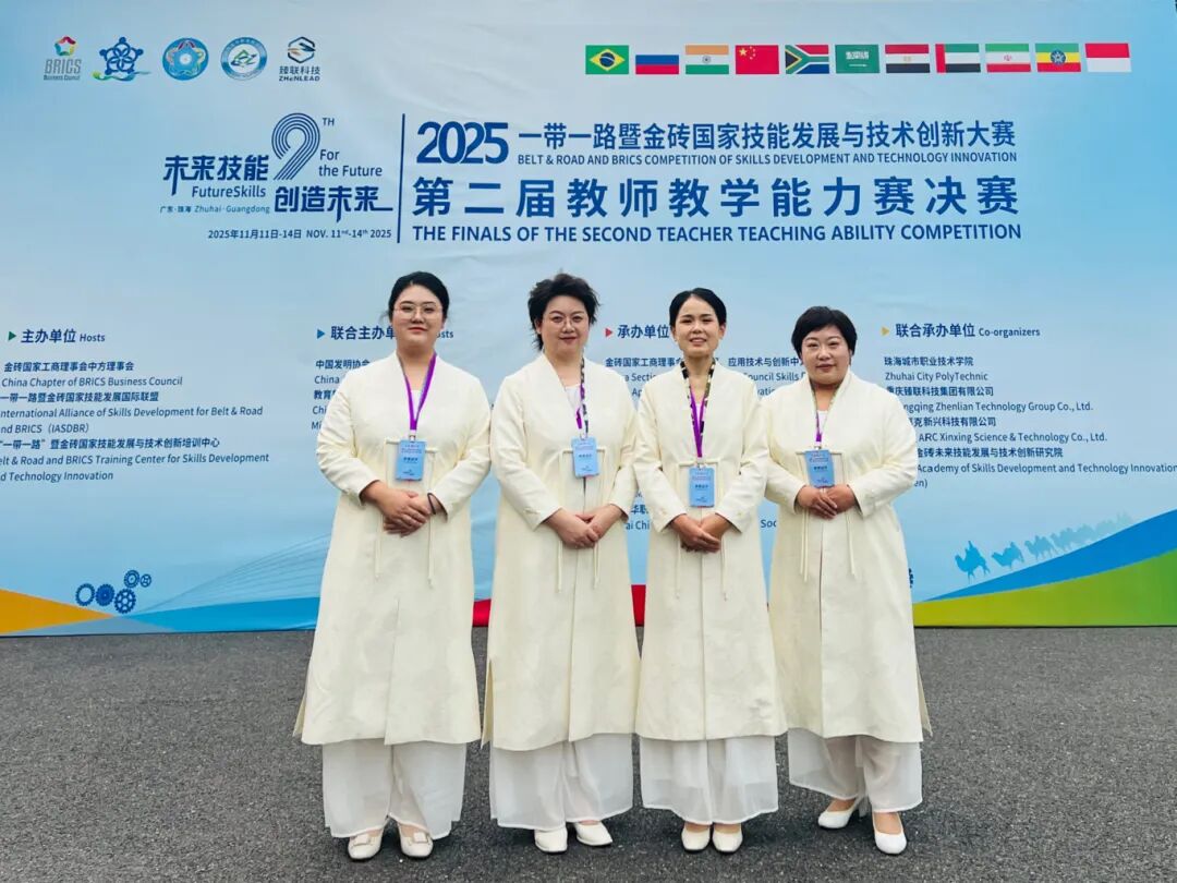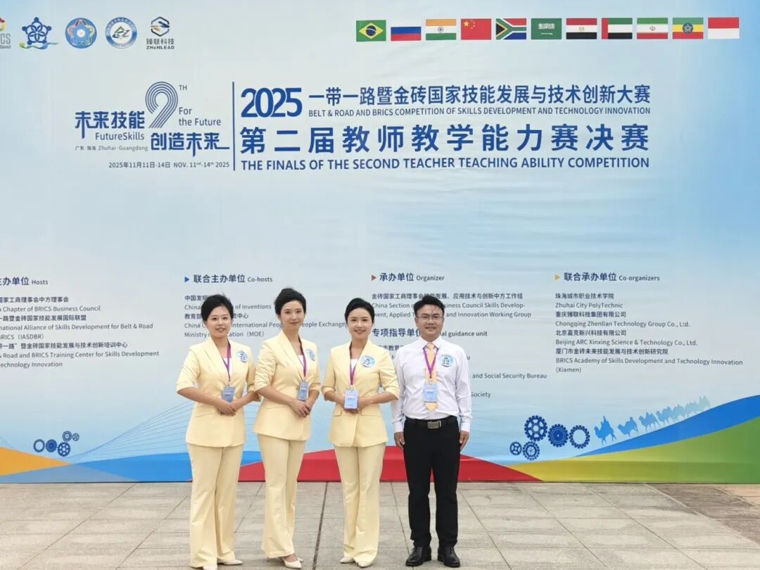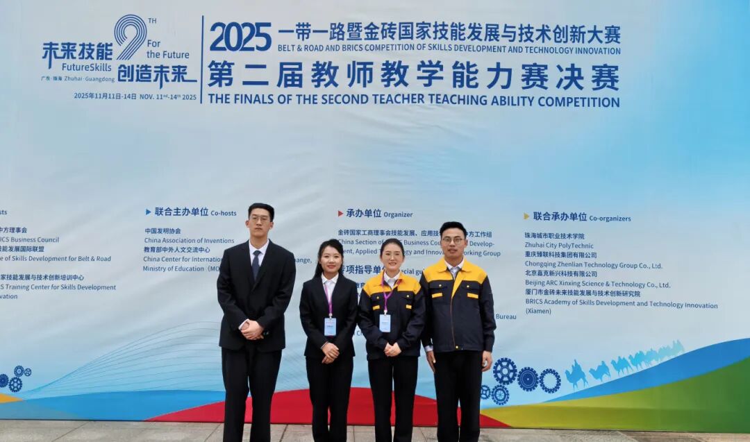 2025年11月11日至14日,2025一带一路暨金砖国家技能发展与技术创新大赛之第二届教师教学能力赛全国总决赛在珠海城市职业技术学院隆重举行。学院四支教学团队凭借先进的教学理念、精湛的教学技艺和富有特色的课程设计,从全国180支优秀职教队伍中脱颖而出,共斩获2银2铜的优异成绩,学院荣获“优秀组织奖”,彰显了我院在教师队伍建设与教学改革领域的显著成效,更展现了“以赛促教、以赛提能”育人理念的丰硕成果。