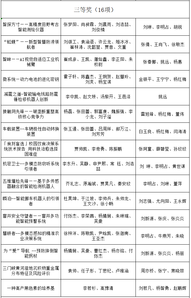 由共青团河南省委、河南省教育厅、河南省社会科学院、河南省科学技术协会、河南省学生联合会共同主办的第十七届 “挑战杯” 河南省大学生课外学术科技作品竞赛活动圆满落幕。本次竞赛自2025年3月启动省级比赛以来,得到了全省各高校的积极响应,共收到来自155所高校上报的4111 件作品。经过专家评审,138所高校的1108件作品进入终审决赛,内容涉及机械与控制、信息技术、数理、生命科学、能源化工、政治、经济、管理、法律等多个领域。学院在省赛中获奖33项,其中一等奖1项,二等奖4项,三等奖28项。