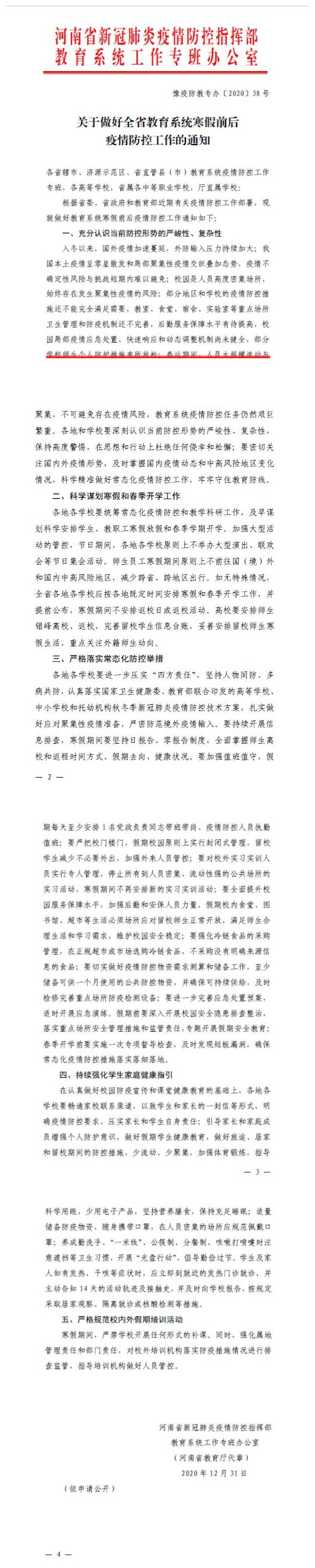 关于做好全省教育系统寒假前后疫情防控工作的通知(豫疫防教专办〔2020〕38 号)(2).pdf