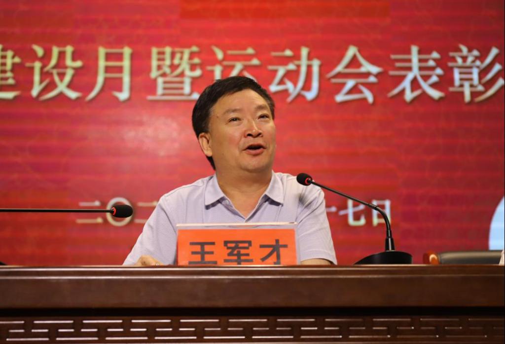 王军才对学风建设月暨运动会做出了总结,并对下一个阶段的工作做了安排部署。王军才首先对在学风建设月和运动会中受到表彰的先进集体和先进个人表示诚挚祝贺,随后从四个方面对我院下一阶段工作提出明确要求:一是凝心聚力学党史,坚定理想信念,增强“听党话,跟党走”的思想和行动自觉;二是巩固意识形态工作,大力培育和弘扬社会主义核心价值观;三是坚持学风建设导向,学风建设关乎高水平人才培养体系建设,要始终坚持正确的学风导向;四是筑牢安全稳定防线,坚决、主动扛起安全稳定责任。最后,王军才强调,我院今日成绩的取得来之不易,今后更要抓牢高职教育大发展历史机遇,做好各项工作,为党的百年华诞献礼。