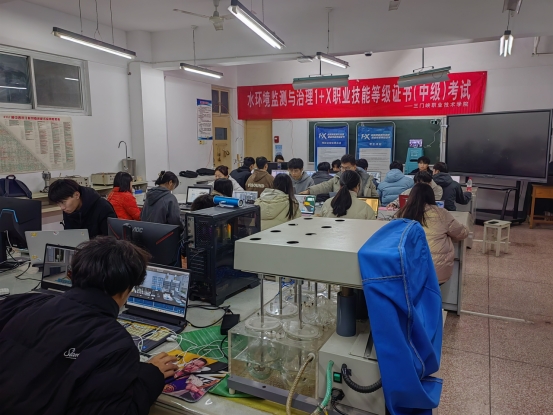 2023年11月11日下午,食品园林学院在实训楼4103成功举办了北控水务1+X“水环境监测与治理”职业技能等级证书(中级)全国统考,来自2022级水净化与安全技术专业的26名同学参加了考核。