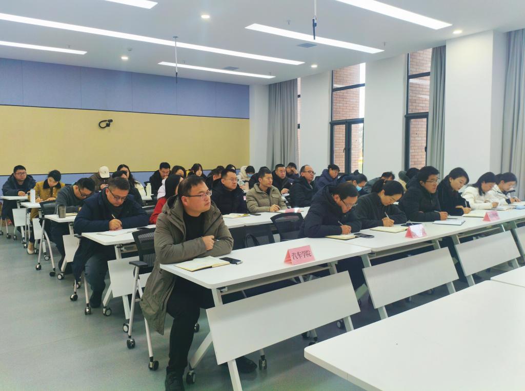 教务处各科室负责人分别就期末考试、教师工作量计算、期末教学检查、下学期课表编排、学业预警、实习检查、实验室安全、学生竞赛等近期教学重点工作进行了安排。