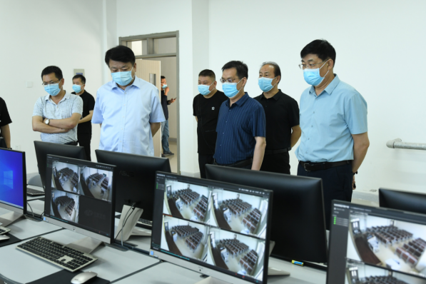 在视频监控室,杨彤认真听取了现代教育技术中心主任王卫星关于视频监控室运行情况的汇报,详细查看了试卷通道、保密室、考场等考试重点区域的视频监控情况,要求进一步检查监控设备的运行情况,确保考试期间所有考试场所全方位、无死角的实时动态监控。