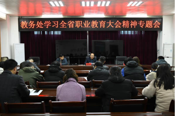 3月7日上午,教务处在天鹅湖校区6号楼荣誉室召开全省职业教育大会精神学习专题会。党委委员、副院长黄世谋出席会议并讲话。教务处负责人马建明、各院部教学管理秘书及教务处全体人员参加会议。会议由教务处刘丰年主持。