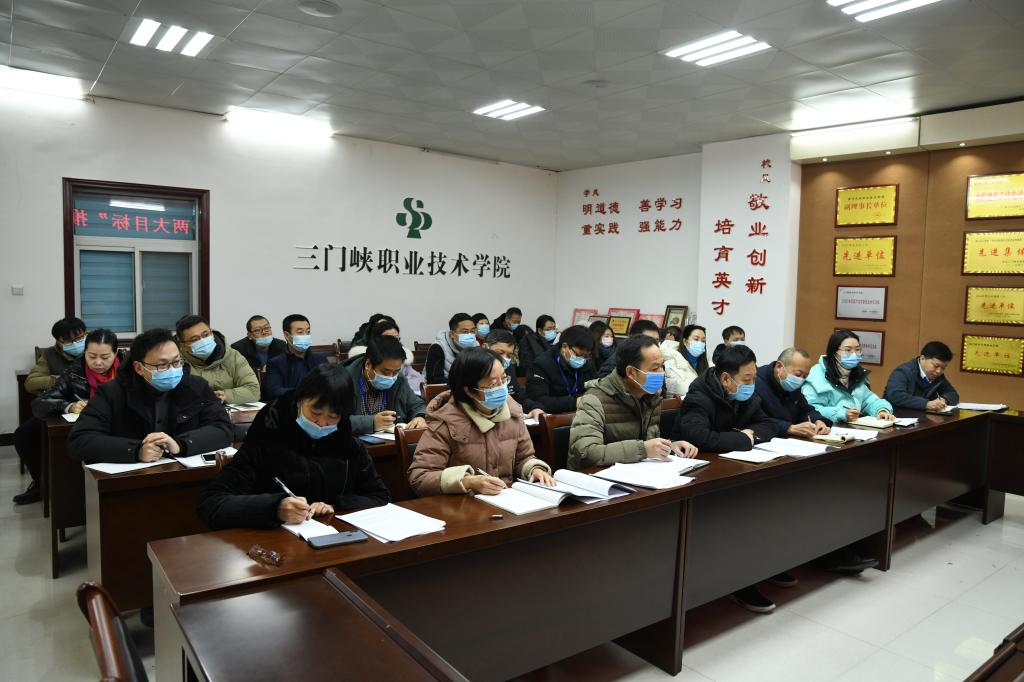 会上,教务处负责人马建明就线上教学预案、围绕“两大目标”推进、落实今天推进会精神等进行了安排。党委委员、副院长黄世谋出席会议并讲话