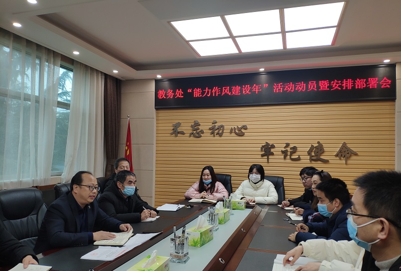 马建明首先传达了院党委《关于印发〈在全院开展“能力作风建设年”活动实施方案〉的通知》(三职院发〔2021〕96号)文件精神,并就活动实施方案具体内容进行了深入解读,他要求教务处全体人员要认真学习领会文件精神,转变工作作风,狠抓工作落实。