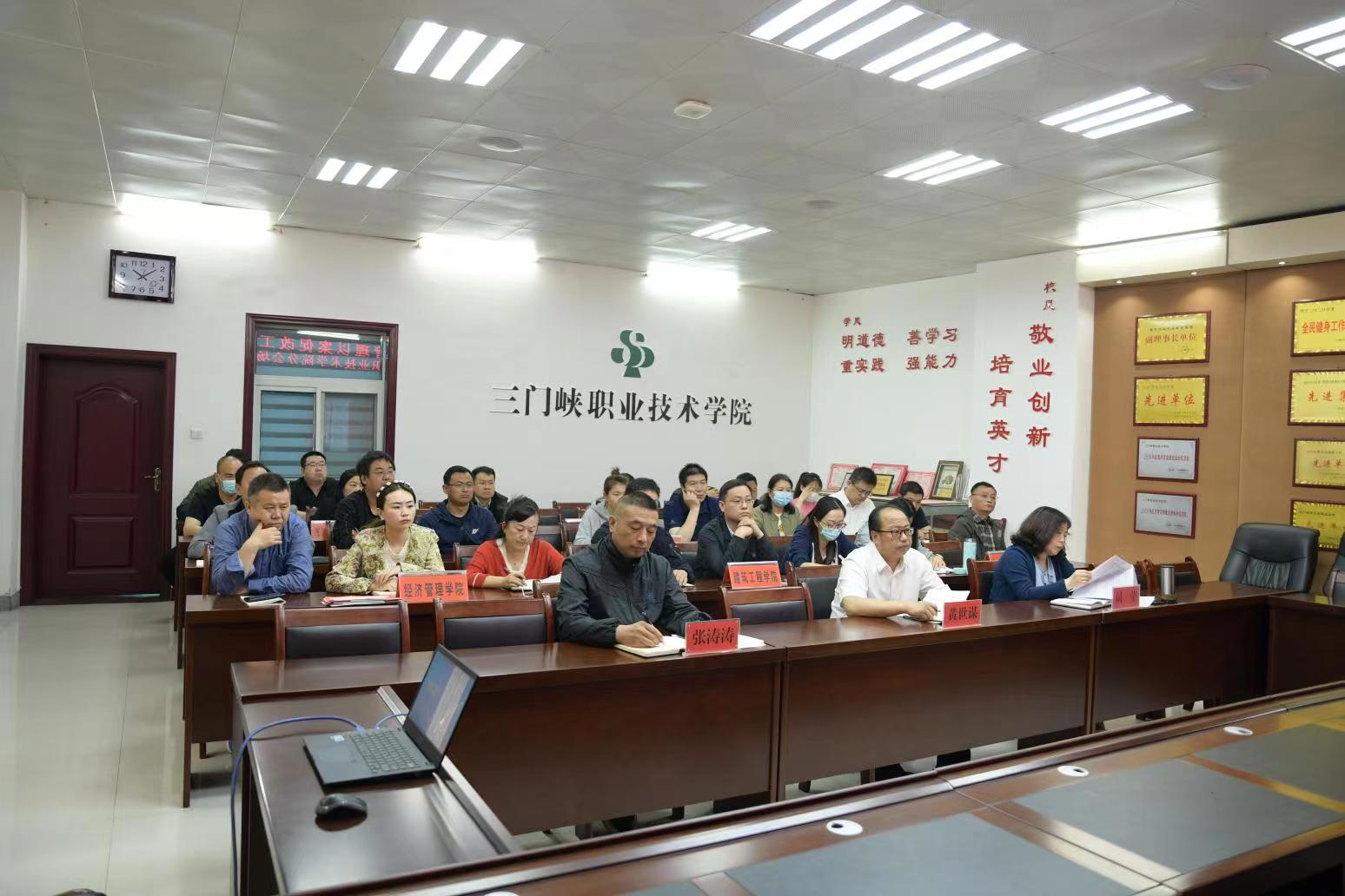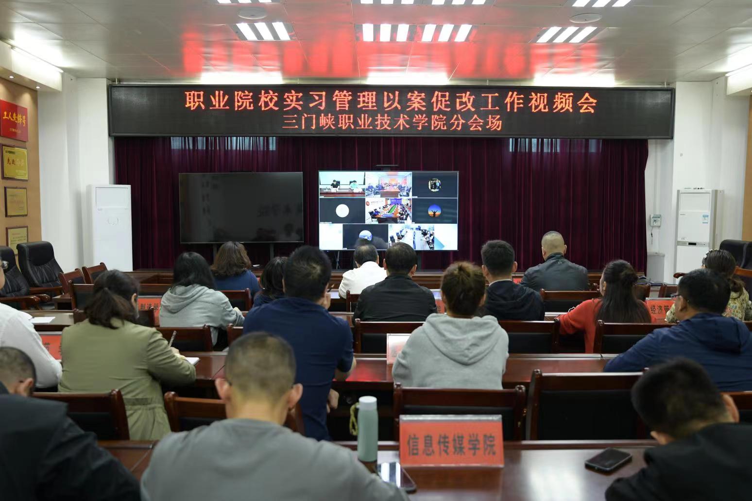 5月26日上午,我院在天鹅湖校区荣誉室设分会场参加河南省职业院校实习管理以案促改工作视频会。党委委员、副院长黄世谋、教务处处长员莹、学生处张涛涛,各院部主管实习副院长、学生科科长、实习管理员及教务处、招生就业办公室有关人员在荣誉室集中参会,各院部实习指导教师和学生辅导员参加线上会议。