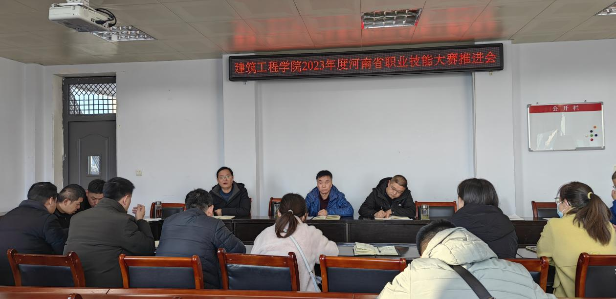 2023年11月13日下午,建筑工程学院在5512会议室召开了建筑工程学院2023年度河南省职业技能大赛推进会,院长张占伟、党总支负责人雷旭锋、教学工作负责人李佳、各教研室负责人以及各参赛队指导教师参加了会议。