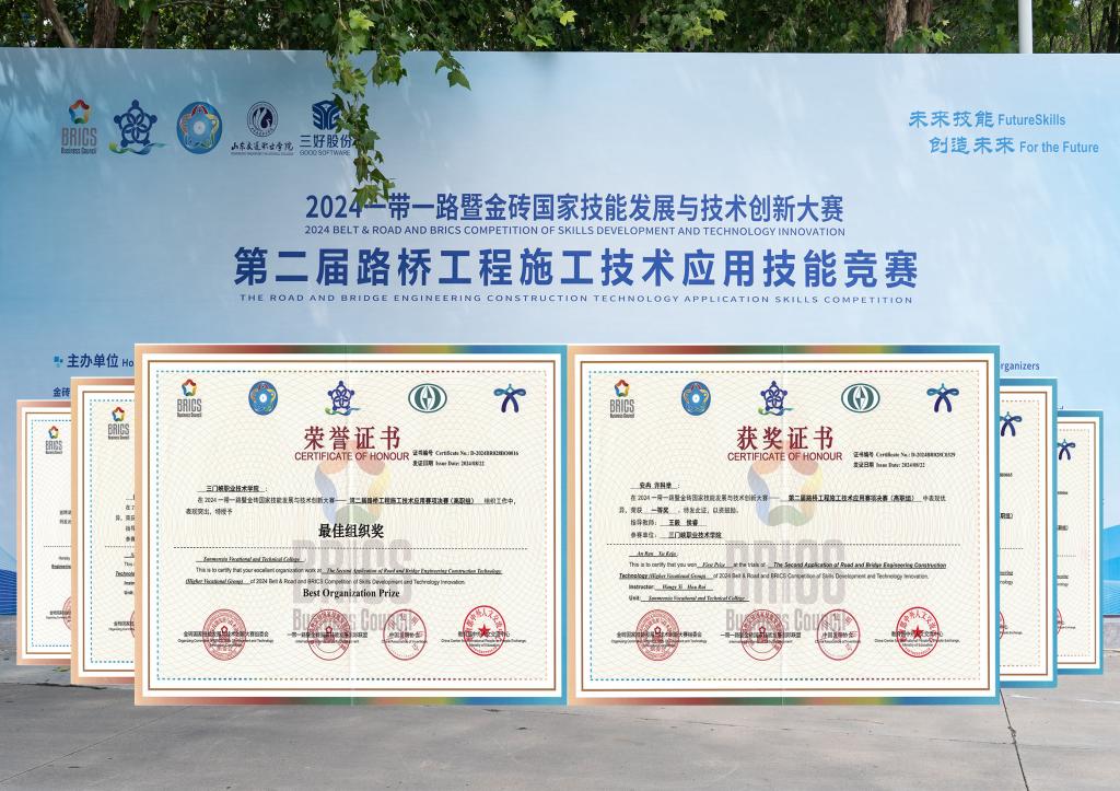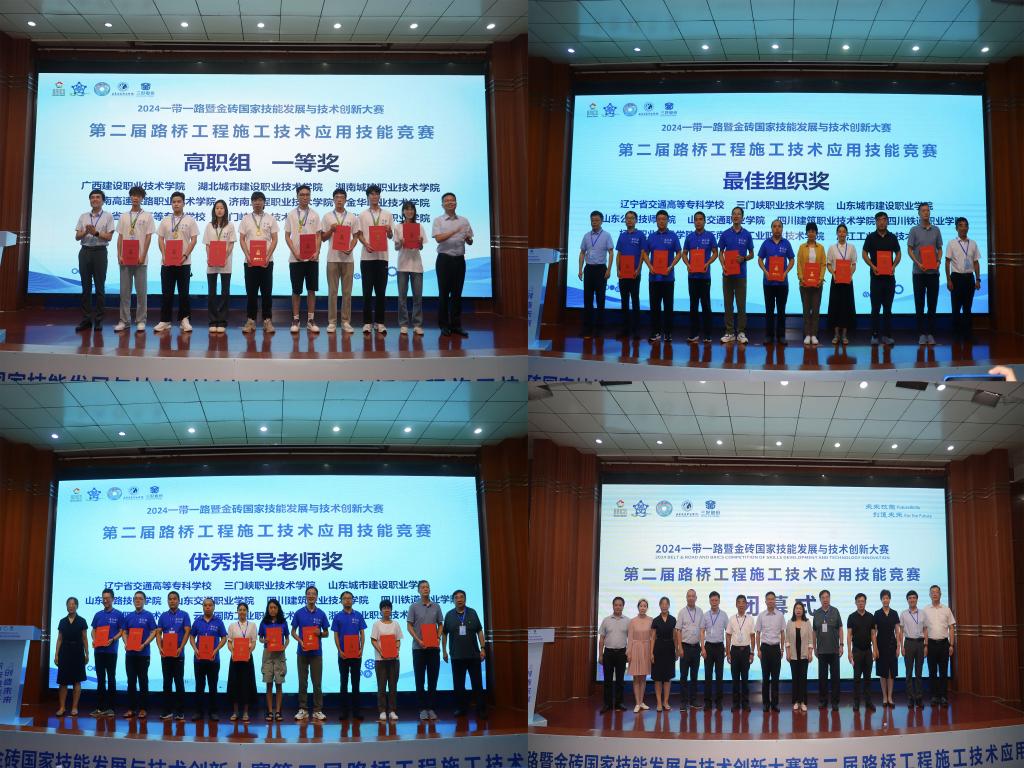 2024年8月20-22日,2024一带一路暨金砖国家技能发展与技术创新大赛第二届路桥工程施工技术应用赛项全国总决赛在山东交通职业学院隆重举行。本次决赛分为中职组、高职组、本科组、国际组,历经前期覆盖全国院校的校园赛,到665所院校参与的区域选拔赛的激烈角逐,共决出来自全国28个省(区)、282所院校的282支队伍参加决赛。我院参赛团队在师生共同努力下,一路披荆斩棘斩,终于获得全国总决赛高职组一等奖,同时我院荣获大赛“最佳组织奖”。